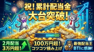 配当報告 【2026年2月配当】配当累計100万円突破!QYLDお休みの2月を救った「配当王BTI」の破壊力