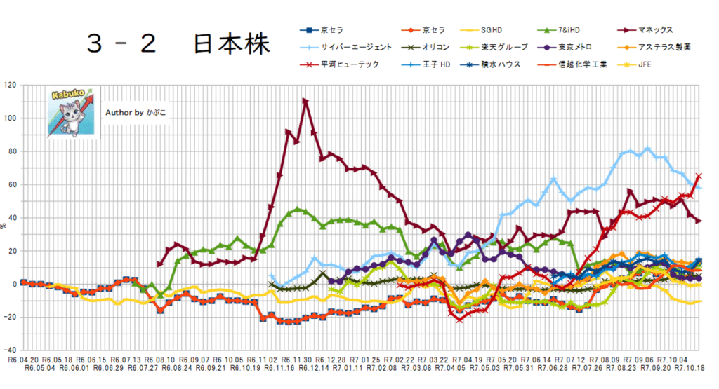それでは我が家の10月の第4週の株記録、いってみよう~(・´з`・)