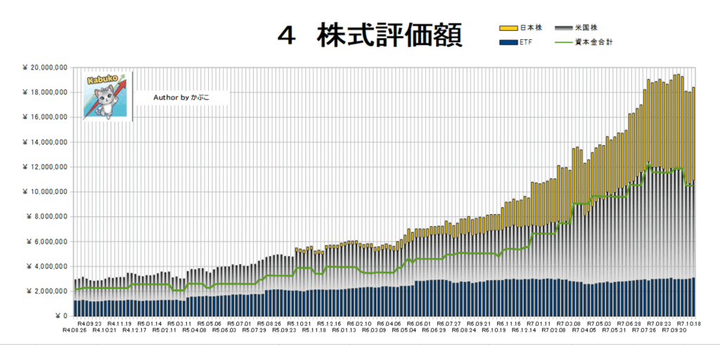 総評価額は¥18,412,625、含み益は800万円目前に到達しました!