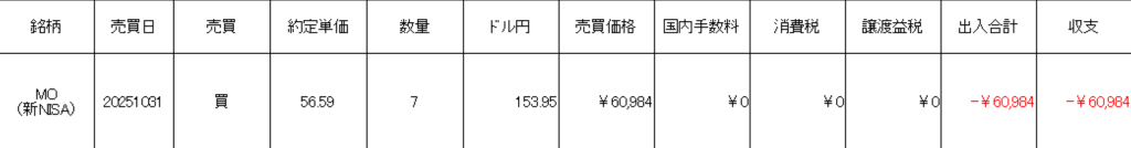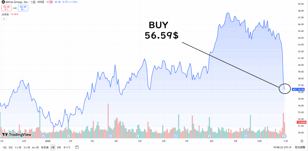 今回のMO株(アルトリアグループ)購入は、高配当を狙うインカム投資戦術の一環として、「下落を待って、NISA枠で仕込む」という王道の戦略的行動です。