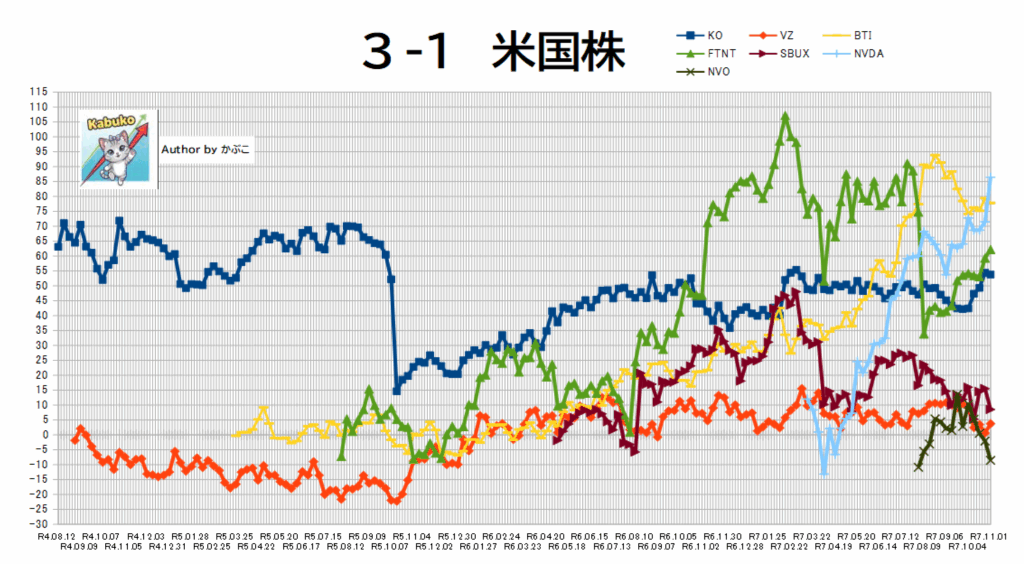 - NVDAが目標株価の200ドルに達する超急騰を見せ、米国株の評価額を大きく押し上げました(+24万円)。