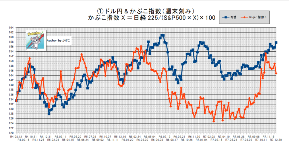 かぶこ指数5※は「144.83」でドル円との相関は「0.92」。