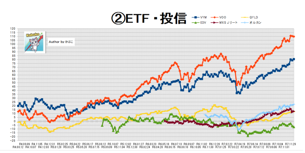 日本株とETFがじわじわ上げて行っている図。