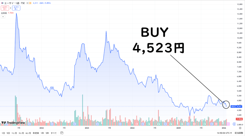- レカネマブ等の成長期待: PER29.3倍という評価は、新薬への期待値の現れ。現在は投資フェーズですが、将来的な「爆発力」を期待してNISA枠で100株仕込みました。