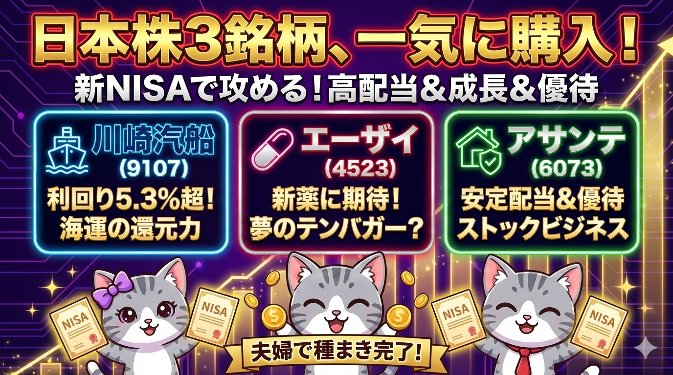 - 夫婦名義で300株: 100株(かぶこ)+ 200株(かぶお)の変則保有。業績の波が激しいセクターではありますが、この還元姿勢がある限り、超長期で「未踏の3,000円」を目指してホールドします。