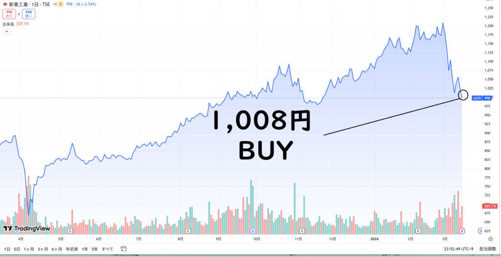 1,000円付近は心理的な節目でもあり、絶好のエントリーポイントと判断しました。