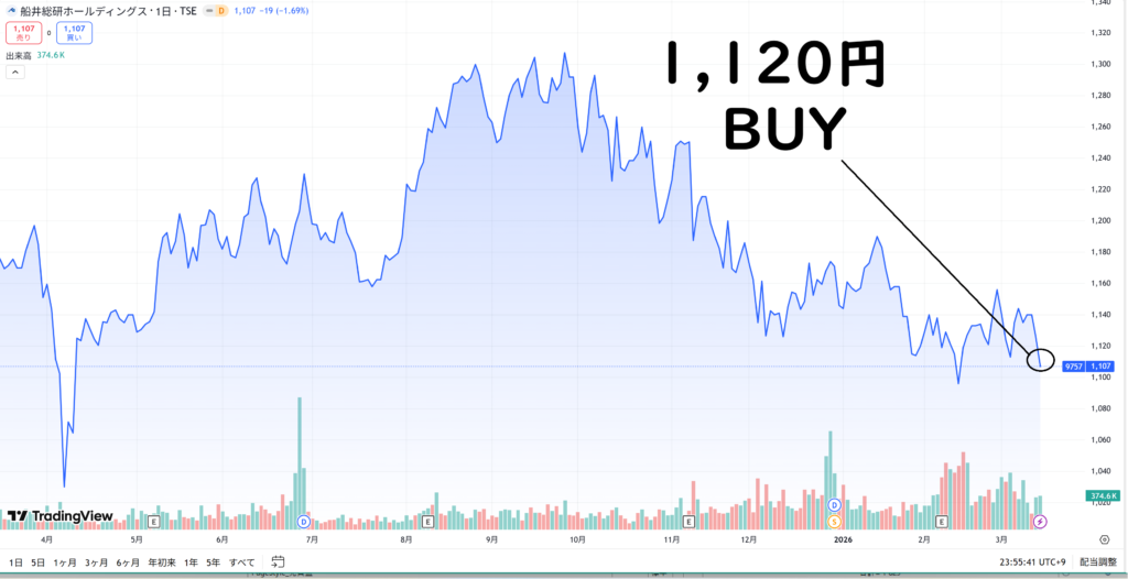 年初来安値に近い1,100円台前半は、配当利回り4.3%を確保できる絶好のエントリーポイント。成長性と還元力の両取りができる水準だと判断しました。