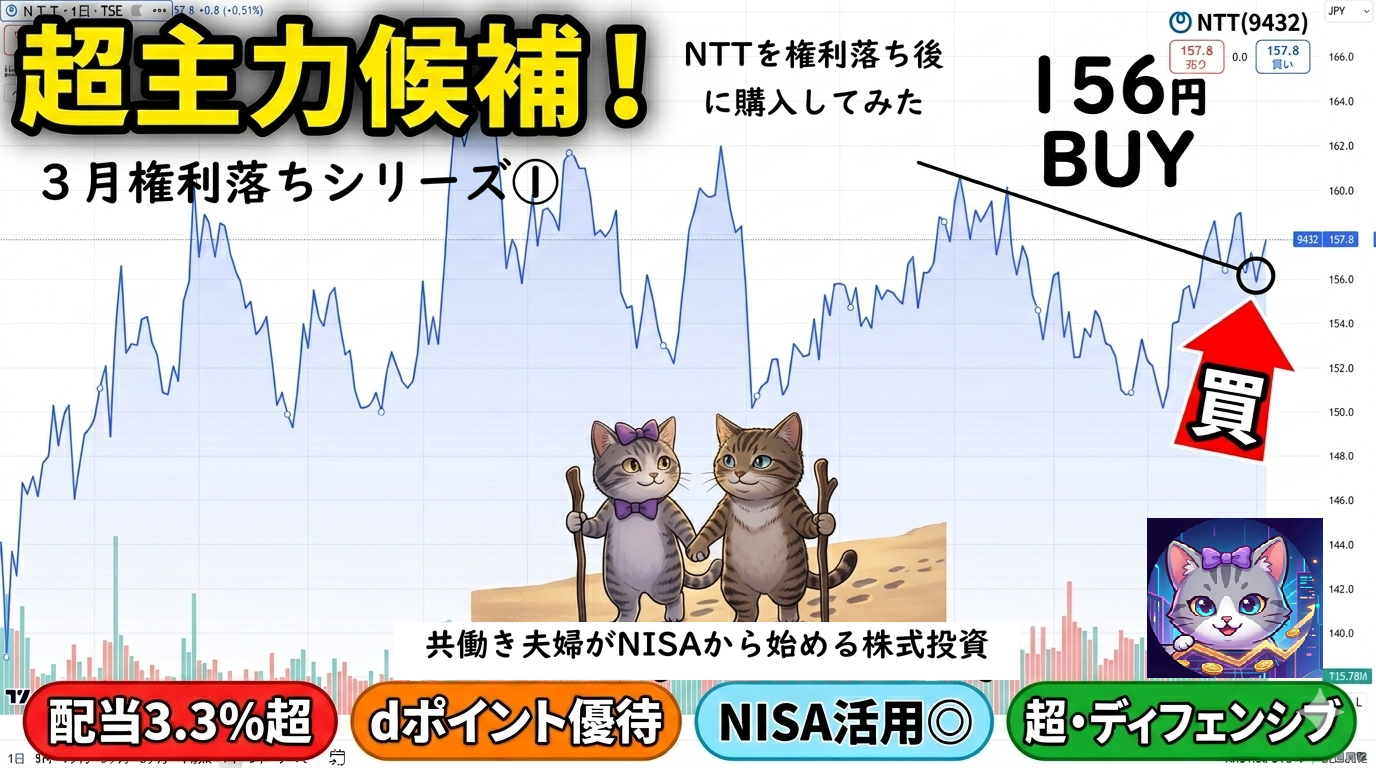 NTTは短期的な爆益を狙う銘柄ではありませんが、「忘れた頃に配当とポイントが届く」という、家計の小さなお助けマンになってくれることを期待しています。