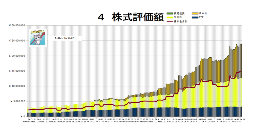 個別株は指数の恩恵を得られず、積み立て&ETFで微増。