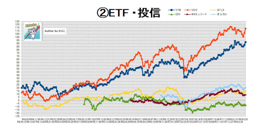 S&P連騰により、+8万円。VOO顕著。