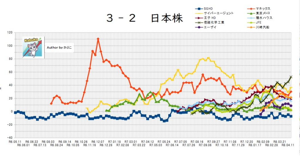 日本株は銘柄数が多くなり過ぎたため、評価額又は保有数が多いものを中心に雑感!