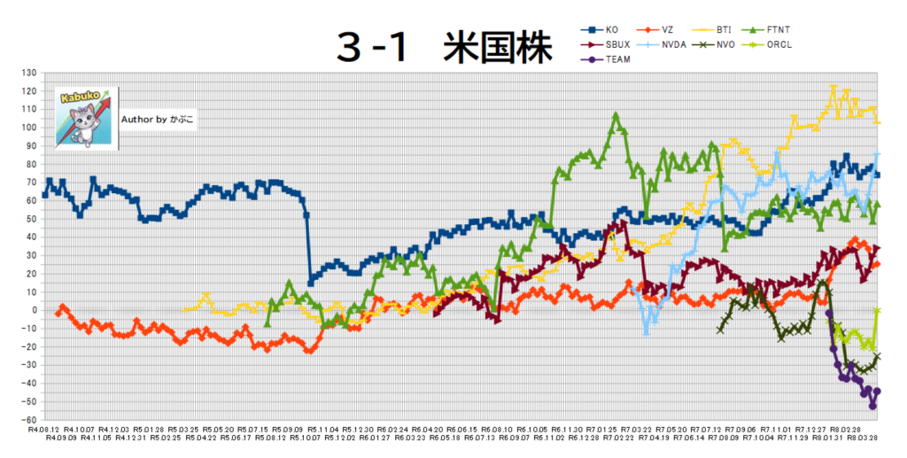 全体的な上昇、特筆すべきはやはりNVDAの上昇。+51万円。