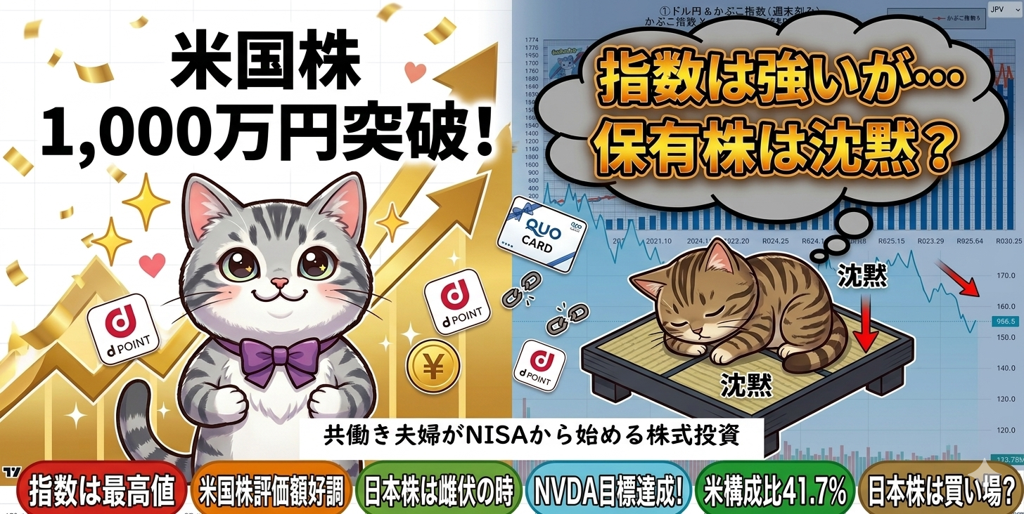 「間違いのない主人公」NVDAが今週も牽引し、米国株の評価額がついに1,000万円の大台を回復。