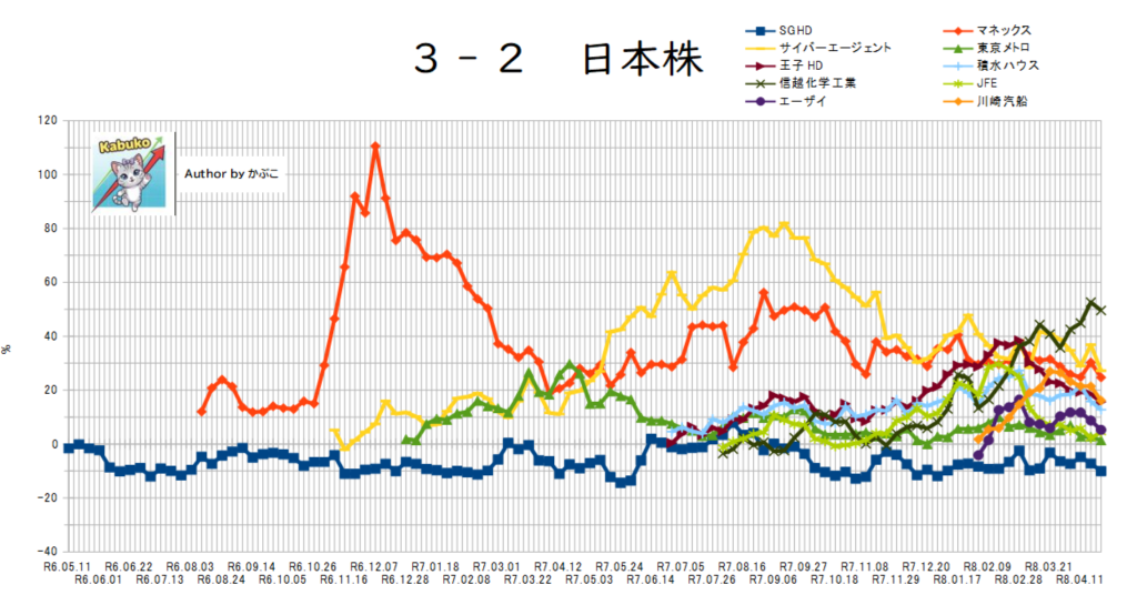 日本株は銘柄数が多くなり過ぎたため、評価額又は保有数が多いものを中心に雑感!