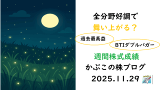 【週間株式成績2025年11月第5週】🎉過去最高益更新🎉 S&P500急騰!ディフェンシブBTIがダブルバガー達成