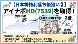 【日本株権利落ち後狙い②】アイナボHD(7539)を取得!夫婦で100株ずつ保有して優待を「超効率化」する裏ワザ